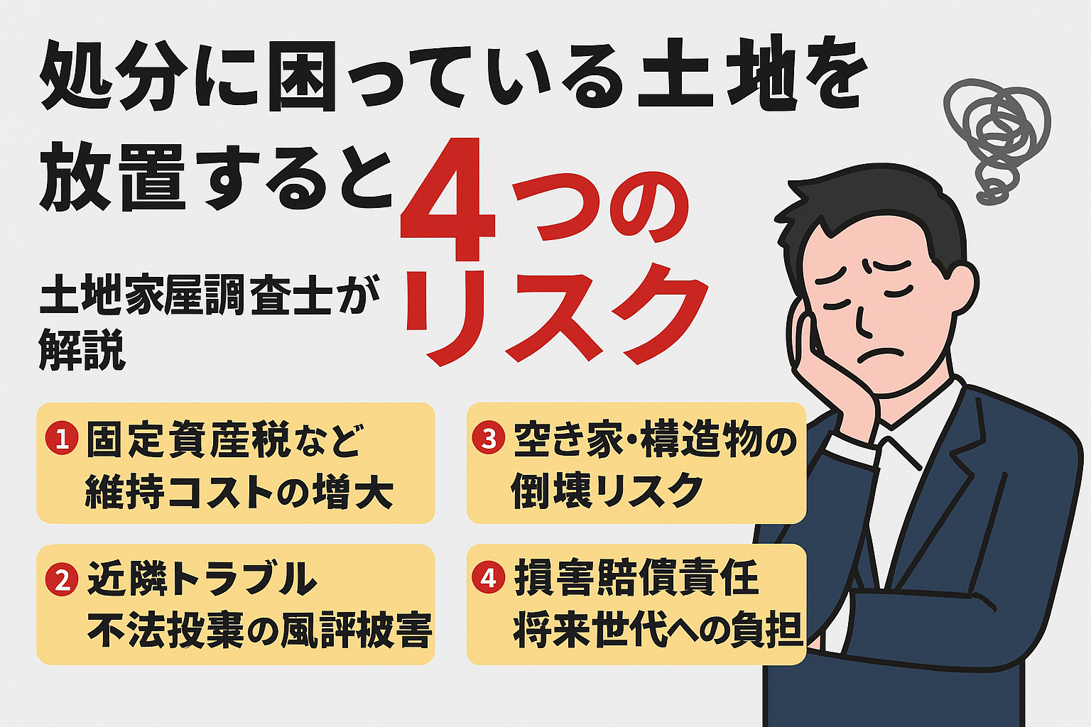 土地家屋調査士の視点から、放置に潜む4つのリスクを事例・数字を交えて詳解。